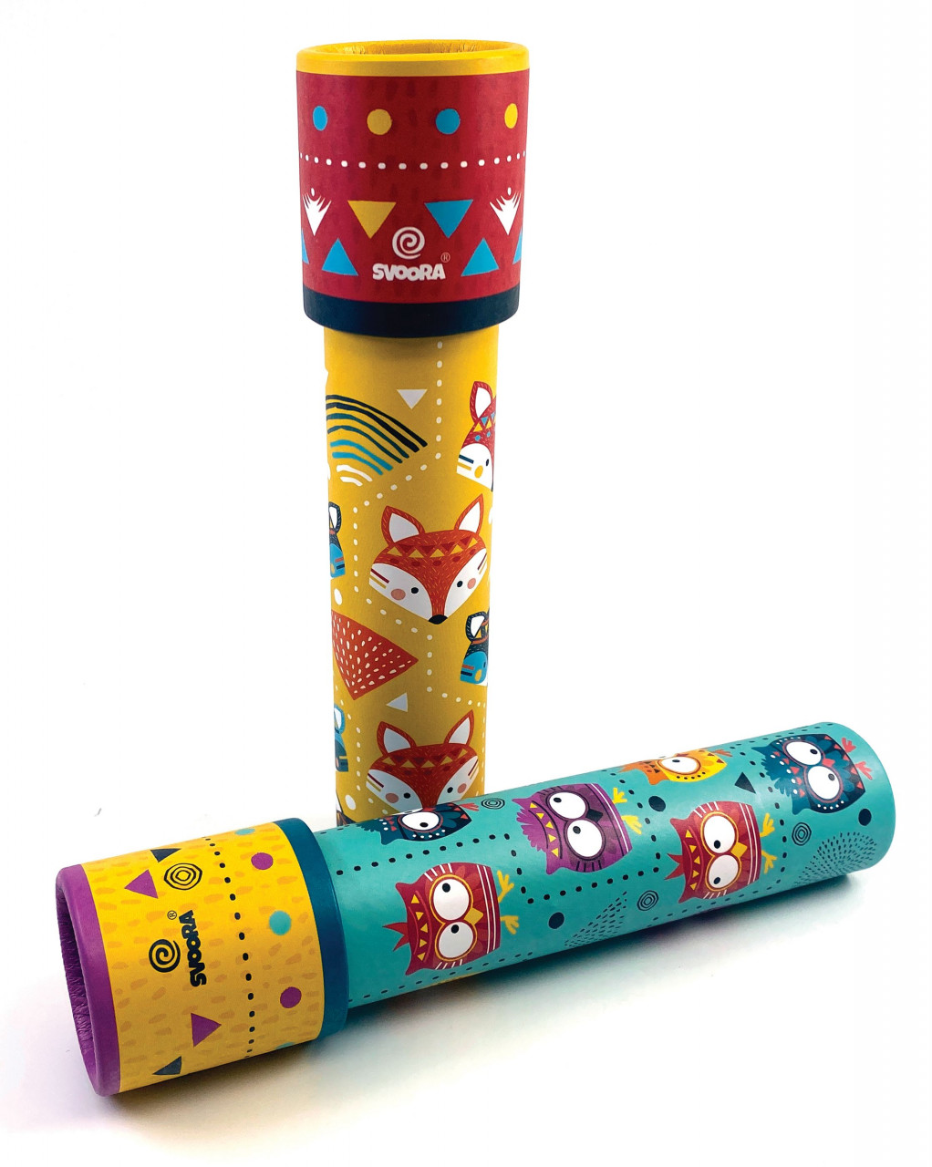 Caleidoscop rotativ Vulpita Caleidoscop rotativ în stil "Indianimals" pentru micii noștri prieteni. Culori frumoase pe suprafața lor și forme caleidoscopice într-o lume de iluzii optice fascinante care extinde fantezia și imaginația. Un joc ecologic realizat din hârtie, în 2 variante - Bufniță & Vulpe, cu o finisare mată plăcută. Vârsta recomandată: + 3 ani. Avertisment: Contraindicat copiilor sub 3 ani, conține părți mici. A se utiliza sub stricta supraveghere a unei persoane adulte. Producător: Svoora, Grecia.