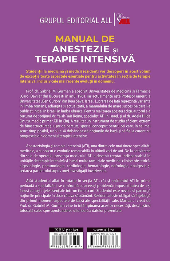 Al doilea volum al Manualului de anestezie și terapie intensivă semnat de Prof. Dr. Gabriel M. Gurman reunește aspectele esențiale pentru activitatea în secția de terapie intensivă, inclusiv cele mai recente evoluții în domeniu.
