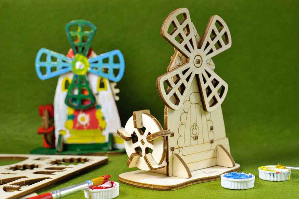 ••••••Cu ajutorul imaginatiei, Moara, ca și toate celelalte puzzle-uri 3D mecanice de Colorat UGEARS, primeste o culoare unica si originala de fiecare data.