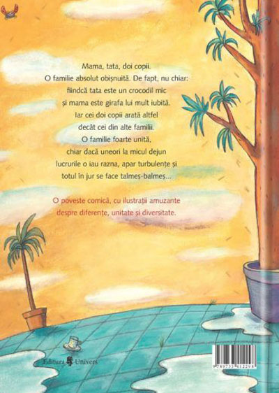 Daniela KulotMama, tata, doi copii. O familie absolut obişnuită. De fapt, nu chiar: fiindcă tata este un crocodil mic şi mama este girafa lui mult iubită. Iar cei doi copii arată altfel decât cei din alte familii.