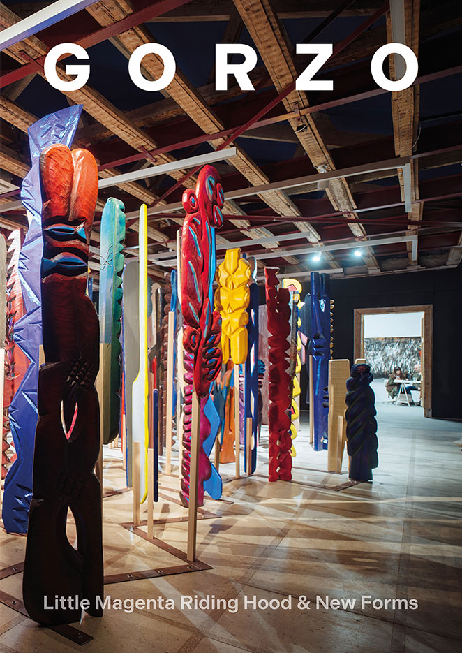 În Scufița Magenta la /SAC @ Malmaison, toate gogomîrlele și bestiile își continuă existențele, însă într-o pădure nebună.” - Dumitru Gorzo Lucrările de mărimi gigantice, create în 2022 la Timișoara pentru expoziția Forme noi la Timișoara, au alcătuit apoi instalația Scufița Magenta, ce a marcat timp de două luni, spațiul galeriei /SAC @ Malmaison. Cioplite în lemn și vopsite în culori eclatante, lucrările redau bizarul aflat la limita dintre tradiție și inovație. Profilările grotești și alegorice ale materiei lemnoase respiră aerul insolit al unor petreceri păgâne și dansuri macabre-populare. “Gorzo a continuat să facă ceea ce știa mai bine – să aducă meșteșugul și priceperea manuală originară, maramureșeană, alături de vocația iconoclastă și non-conformistă proprie, să prolifereze lucrări arătoase care să profereze sensuri bățoase.” - Erwin Kessler