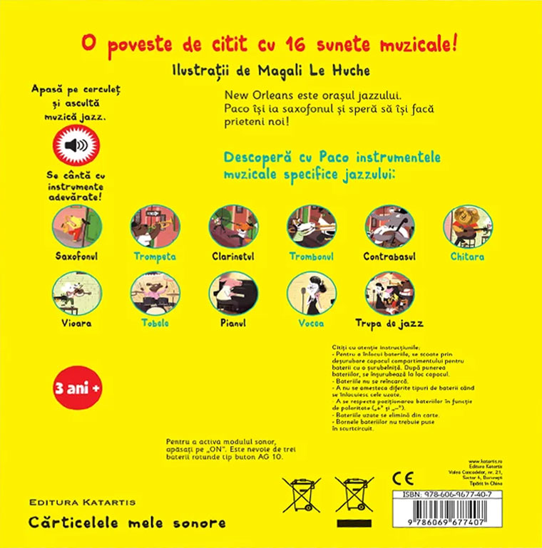De-a lungul poveștii, cei mici fac cunoștință cu instrumentele muzicienilor și se pot delecta cu sunete de saxofon, trompetă, clarinet, trombon, chitară, contrabas, vioară, tobe și pian. Spre final, micuții se bucură de o scurtă reprezentație muzicală oferită de trupa Paco Jazz.