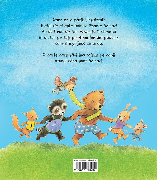 Oare ce-a păţit Ursuleţul? Bietul de el este bolnav. Foarte bolnav! A răcit rău de tot. Veveriţa îi cheamă în ajutor pe toţi prietenii lor din pădure, care îl îngrijesc cu drag.