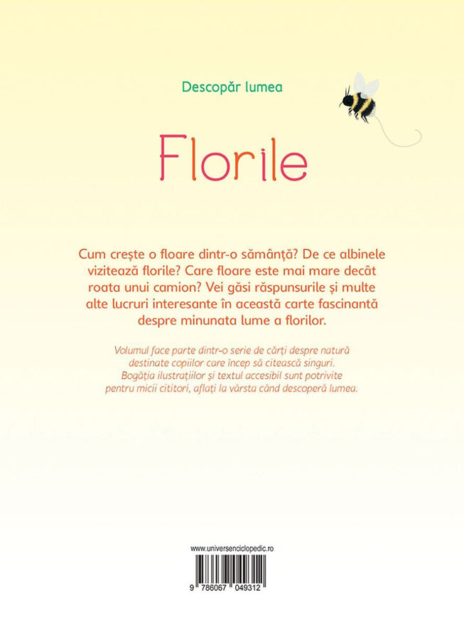 Cum crește o floare dintr-o sămânță? De ce albinele vizitează florile? Care floare este mai mare decât roata unui camion? Vei găsi răspunsurile și multe alte lucruri interesante în această carte fascinantă despre minunata lume a florilor.