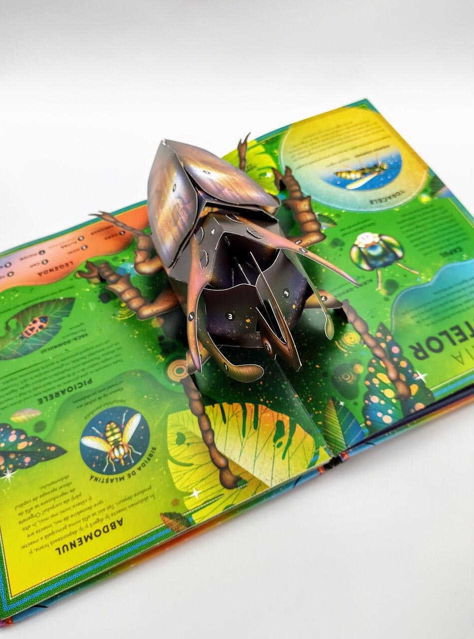 O carte pop-up de lux care include pop-up-uri gigantice, ce aduc în prim-plan insectele și arahnidele într-o experiență vizuală impresionantă.