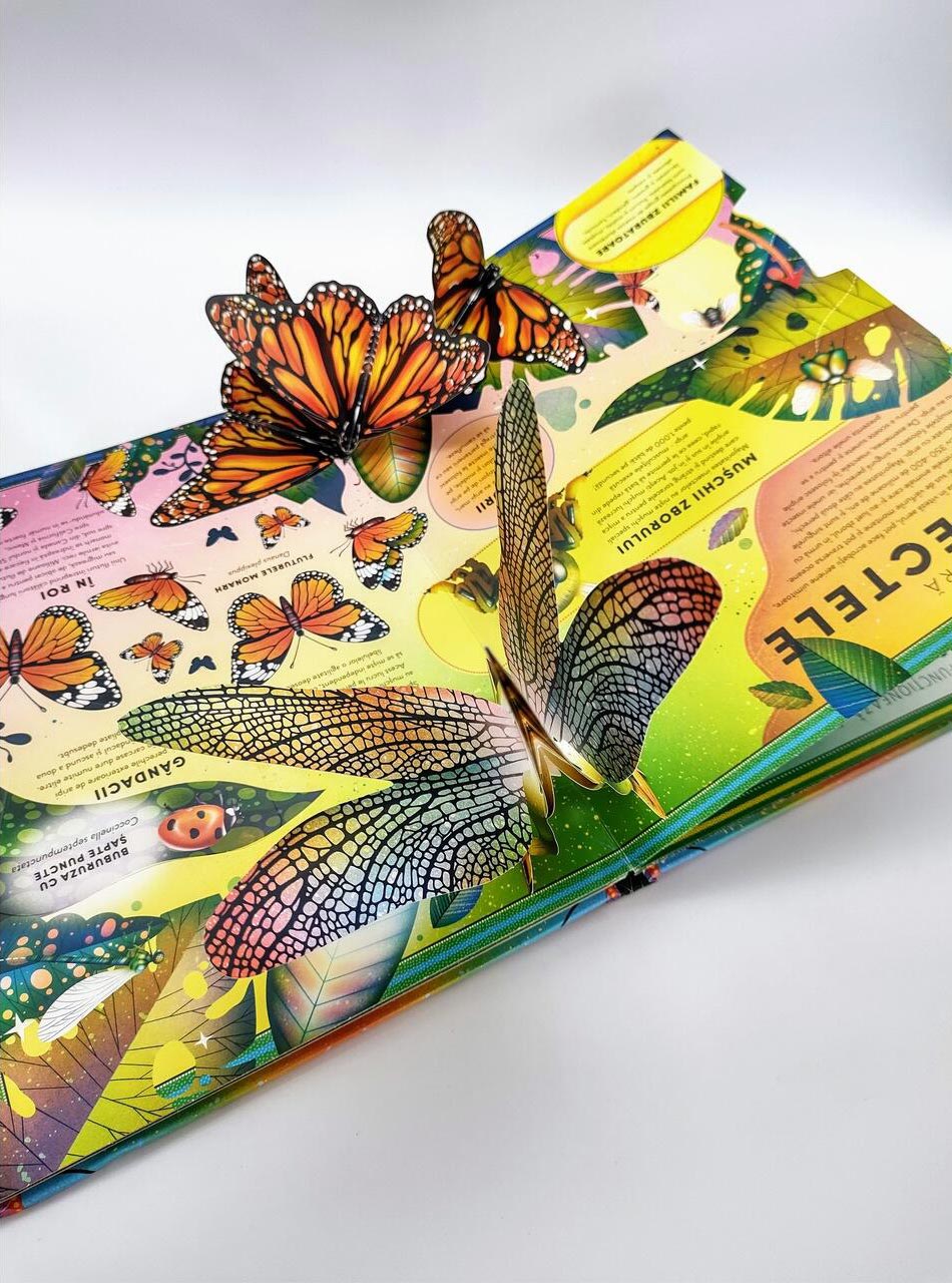 Formatul pop-up și clapetele interactive oferă o experiență vizuală și tactilă care stimulează curiozitatea, imaginația și învățarea prin explorare — perfectă pentru copiii pasionați de natură și vietăți miniaturale.