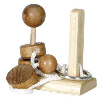 ELIBEREAZA INELUL -3 Eliberează inelul - Modele cu diferite grade de dificultate, care îți pun răbdarea și perspicacitatea la încercare. După ce ai reușit, încearcă să îl aduci în poziția inițială pentru următorul jucător. Confecționat din lemn, metal, șnur și alte materiale non-toxice conform reglementărilor EN71 & ASTM. Vârsta recomandată: + 8 ani. Grad de dificultate: **** AVERTISMENT: Contraindicat copiilor sub 3 ani. Conține șnur, piese mici ce pot fi înghițite. A se utiliza sub directa supraveghere a unei persoane adulte. Producător: Fridolin, Germania.