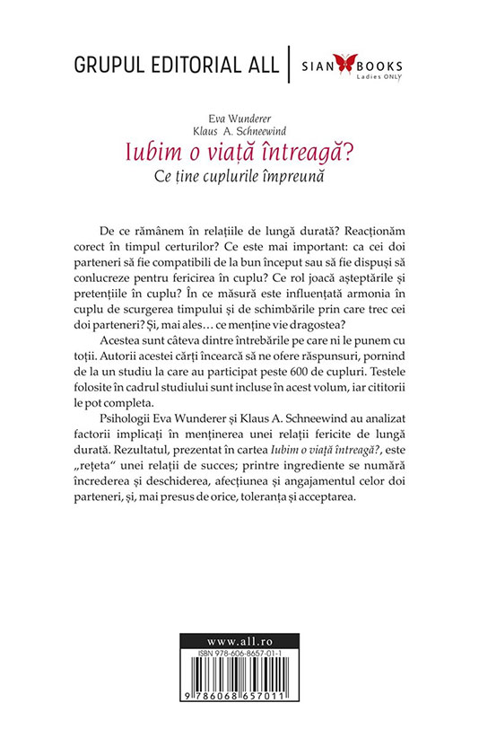 Eva Wunderer, Klaus Alfred SchneewindDe ce rămânem în relațiile de lungă durată? Reacționăm corect în timpul certurilor? Ce este mai important: ca cei doi parteneri să fie compatibili de la bun început sau să fie dispuși să conlucreze pentru fericirea în cuplu? Ce rol joacă așteptările și pretențiile în cuplu? În ce măsură este influențată armonia în cuplu de scurgerea timpului și de schimbările prin care trec cei doi parteneri?