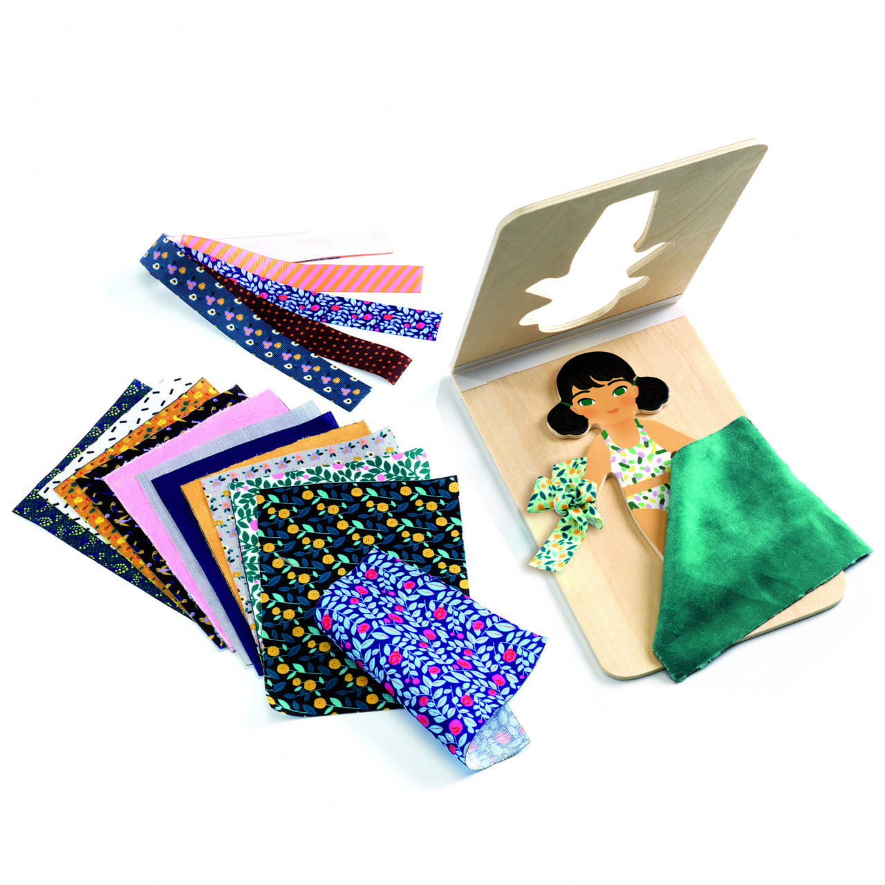 Jolizabi, joc de potrivire Copiii se vor distra amestecând diferite țesături și panglici pentru a crea ținute fabuloase. Bogăția țesăturilor oferă un număr mare de combinații. Baza din lemn se deschide și se închide, permițând țesăturii să fie introdusă și blocată în interior, astfel încât să nu se miște. Dimensiune joc: 13 x 20 x 1 cm. Conținut: bază dublă din lemn, 18 țesături și 5 panglici (țesături imprimate și catifea). Vârsta recomandată: +3 ani. Confecționat din lemn certificat FSC®. AVERTISMENT: Contraindicat copiilor sub 3 ani. A se utiliza sub directa supraveghere a unui adult. Producător: Djeco, Franța.