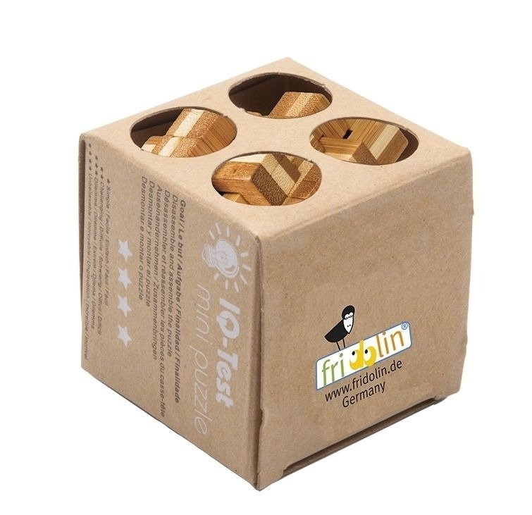 Puzzle-ul IQ 3D Ananas Fridolin este un joc de logică tridimensional realizat din lamele de bambus natural, asamblate într-o structură sferică complexă tip nod. Provocarea este să descompui și să reasamblezi puzzle-ul pornind de la pură percepție spațială și logică, fără instrucțiuni vizuale de ajutor.