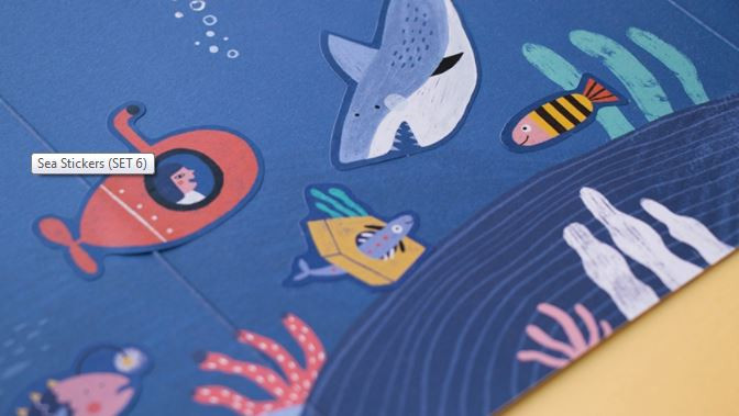 Set cu abțibilduri repoziționabile La mare Setul conține coli cu 150 de stickere refolosibile cu diferite animale marine, sirene, înnotători, corali... și tot felul de pești multicolori. Creează scene marine așa cum dorești! Ilustrație Queralt Armengol Confecționat din hârtie FSC și carton reciclat. Conform reglementarilor EN71&ASTM. Vârsta recomandată: +3 ani AVERTISMENT: Contraindicat copiilor sub 3 ani. Conține părți mici. Se recomandă supravegherea copilului de către un adult în timpul jocului. Citiți cu atenție eticheta produsului înainte de a înmâna jucăria copilului. Producător: Londji, Spania.