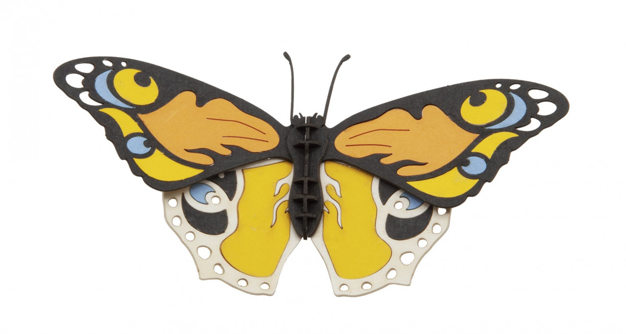 Macheta 3D Fluture Set de construit fluture 3D din carton presat, rigid. Model de animal care urmează să fie asamblat din părți componente Pune-ți la încercare îndemânarea. Instrucțiunile de asamblare sunt incluse. Confecționat din carton aplicat cu laser cu precizie. Vârsta recomandată: +8 ani. AVERTISMENT: Contraindicat copiilor sub 3 ani, conține piese mici, pericol de înghițire. A se utiliza sub directa supraveghere a unui adult. Producător: Fridolin, Germania.