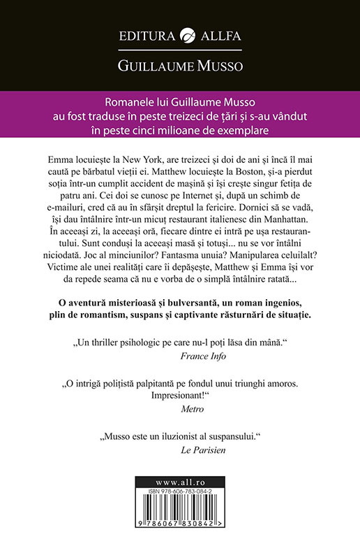 Guillaume MussoGuillaume Musso, încoronat „iluzionist al suspansului” (Le Parisien), scoate din joben o nouă aventură misterioasă şi bulversantă, în stilul care l-a consacrat.