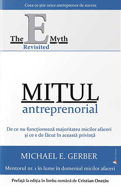 „Mitul antreprenorial: De ce nu funcționează majoritatea micilor afaceri și ce e de făcut în această privință” (The E-Myth Revisited) de Michael E. Gerber este ediția revizuită a cărții E-Myth, lansate în urmă cu 30 de ani de mentorul nr. 1 în lume în domeniul micilor afaceri. Dacă vrei să pui bazele unei afaceri, dacă ai un mic business și te întrebi de ce nu merge sau de ce nu merge atât de bine pe cât ți-ai dori tu, dacă vrei să afli ce anume și unde anume greșești în administrarea afacerii tale, aceasta este cartea de care ai nevoie! Asta pentru că Michael E. Gerber este cea mai importantă voce a micilor afaceri și întreprinderi din America, iar cartea de față poate fi considerată un mic ghid care face afacerile să funcționeze, garantând totodată să îți ofere o experiență revelatoare: „Vei vedea ce oportunități aproape miraculoase sunt disponibile oricui pornește o mică afacere așa cum trebuie, cu o înțelegere adevărată și cu instrumentele necesare.”