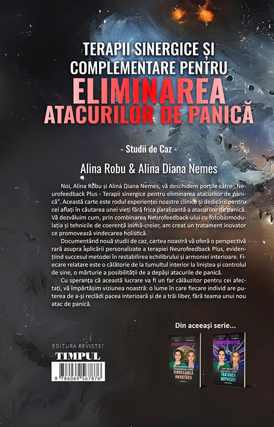 Cartea explorează experiențele și trăirile a 9 pacienți, care trăiesc episoade de atacuri de panică recurente. Vei descoperi cum arătau viața lor înainte de terapie și cum le-a afectat calitatea vieții, cariera, performanțele, precum și relațiile cu familia. Vom discuta despre ce terapii au încercat înainte de a apela la Neurofeedback Plus și de ce au decis să încerce această terapie.