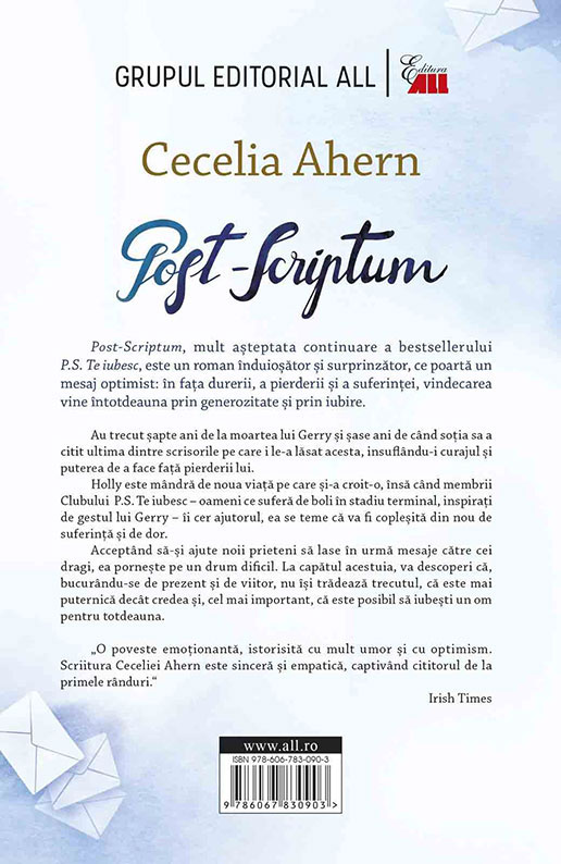 La 15 ani de la apariția cărții-fenomen P.S. Te iubesc, Cecelia Ahern deschide o nouă fereastră către viața lui Holly. La scurt timp după apariția ediției britanice, „Post-Scriptum” poate fi răsfoit, savurat, iubit și recomandat în limba română.