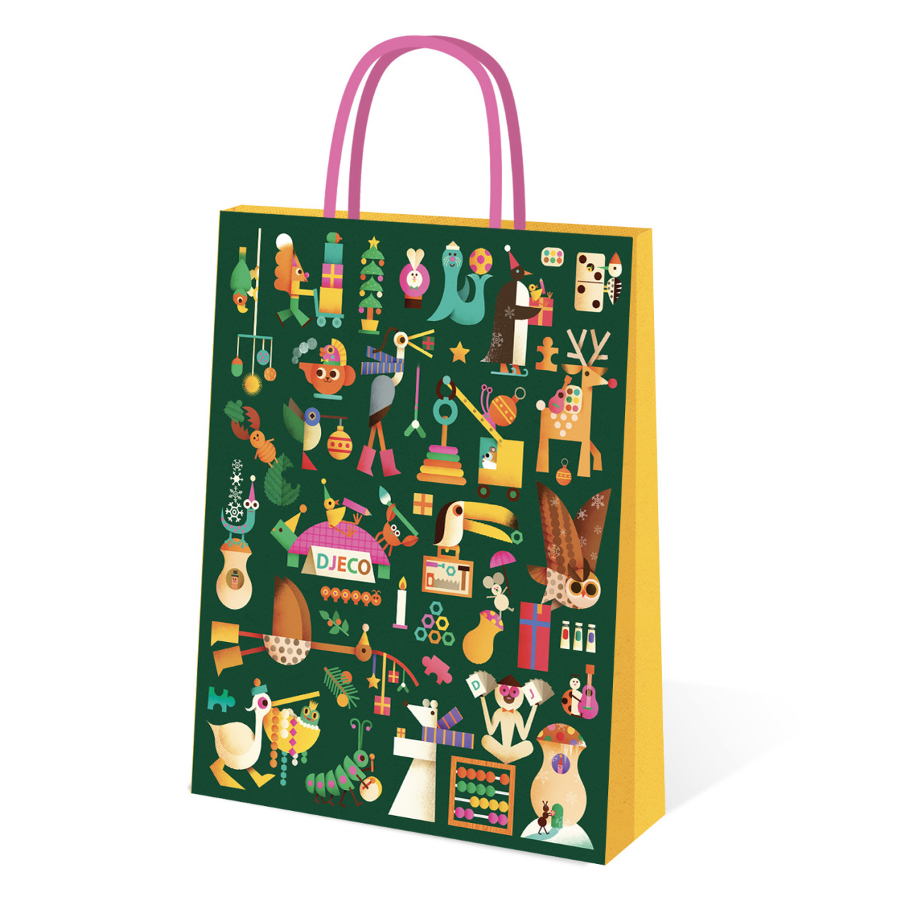 Punga cadou din hartie Djekissimo2023 Sacoșă din hârtie, design Annabelle Buxton, 2021. Dimensiuni: 32 x 40 x 12 cm. Producător: Djeco, Franța.