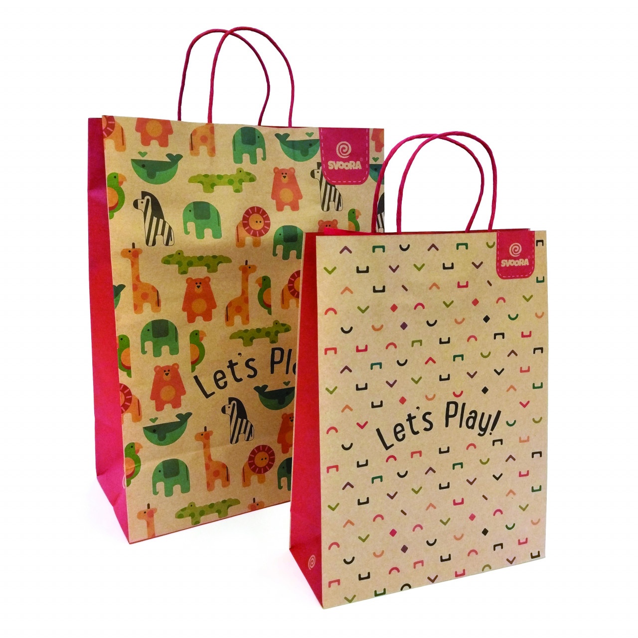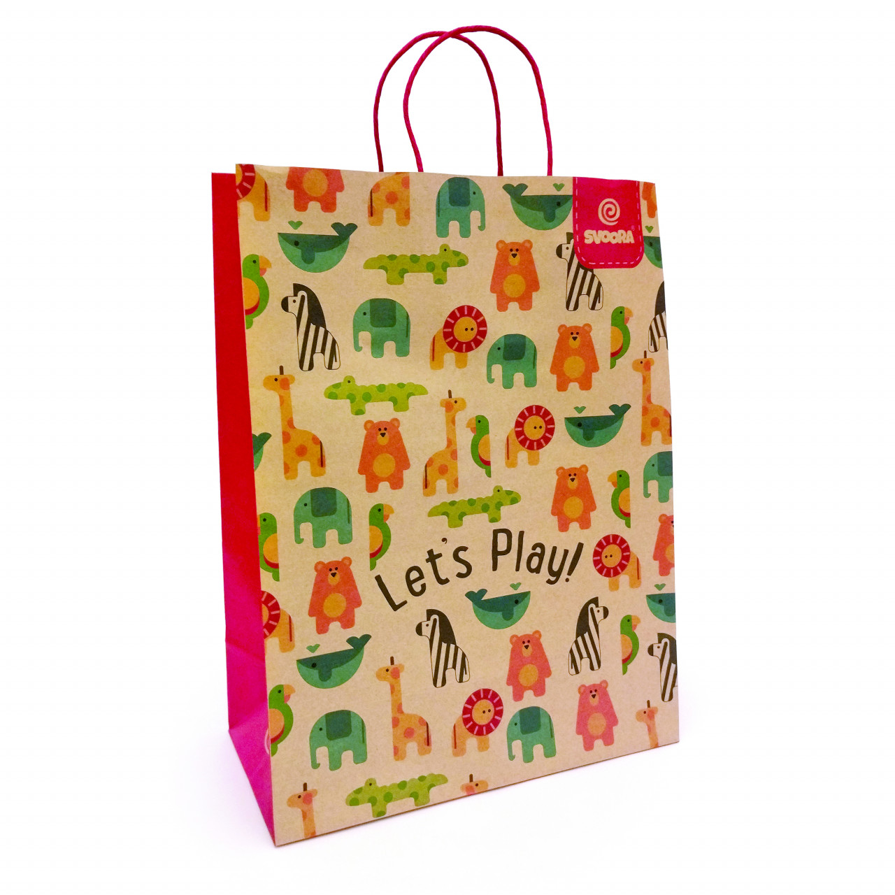 Sacosa mare din hartie Fabricată din hârtie kraft și concepută cu o ilustrație minimalistă - dar în același timp colorată! Ilustrația 'Animals' cu dimensiunile: 32x16x43 cm (format mare). Disponibilă și în ilustrația "Pinball" cu dimensiuni: 24.5×9.5×33.5 cm (format mic) Realizate din surse responsabile. Producător: Svoora, Grecia.