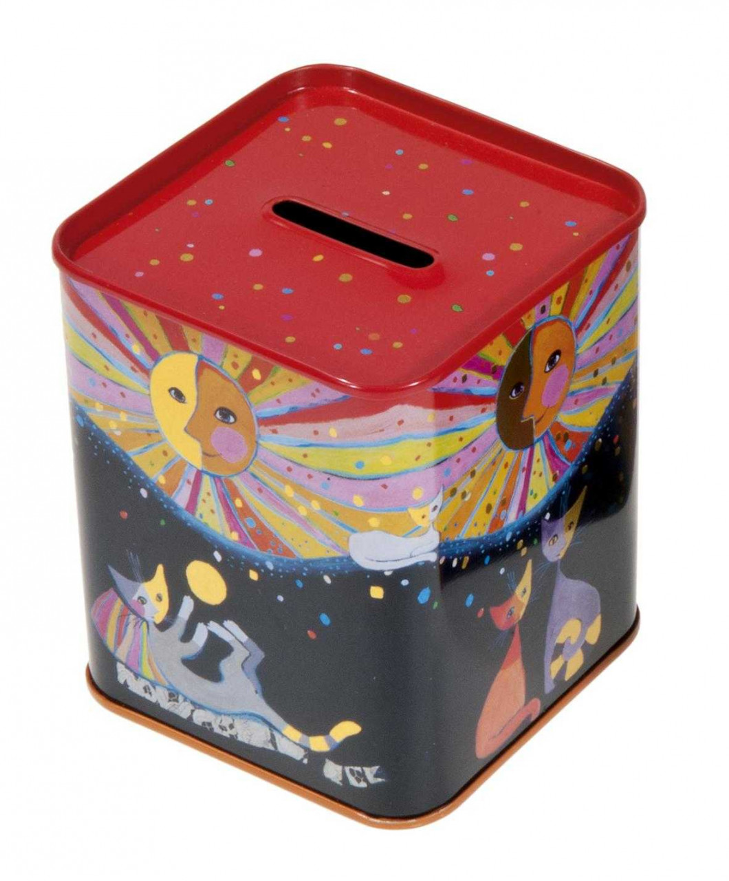 Pusculiță Rosina Wachtmeister – Design Artistic Adaugă o notă de eleganță și artă în spațiul tău cu această pusculiță inspirată de lucrările renumitei artiste Rosina Wachtmeister . Pentru păstrarea economiilor sau ca obiect decorativ distinctiv. ???? Caracteristici principale: Design artistic: Ilustrație semnată de Rosina Wachtmeister, cunoscută pentru reprezentările sale unice cu pisici. Material de calitate: Fabricată din metal durabil, asigurând o utilizare îndelungată. Dimensiuni compacte: Potrivită pentru diverse spații, de la birou la camera copilului Funcționalitate: pentru economisirea monedelor sau bancnotelor. ???? Un cadou perfect pentru iubitorii de artă și pisici, combinând utilul cu plăcutul într-un obiect decorativ și funcțional. Nu este o jucărie. Articol decorativ. Producător: Fridolin, Germania