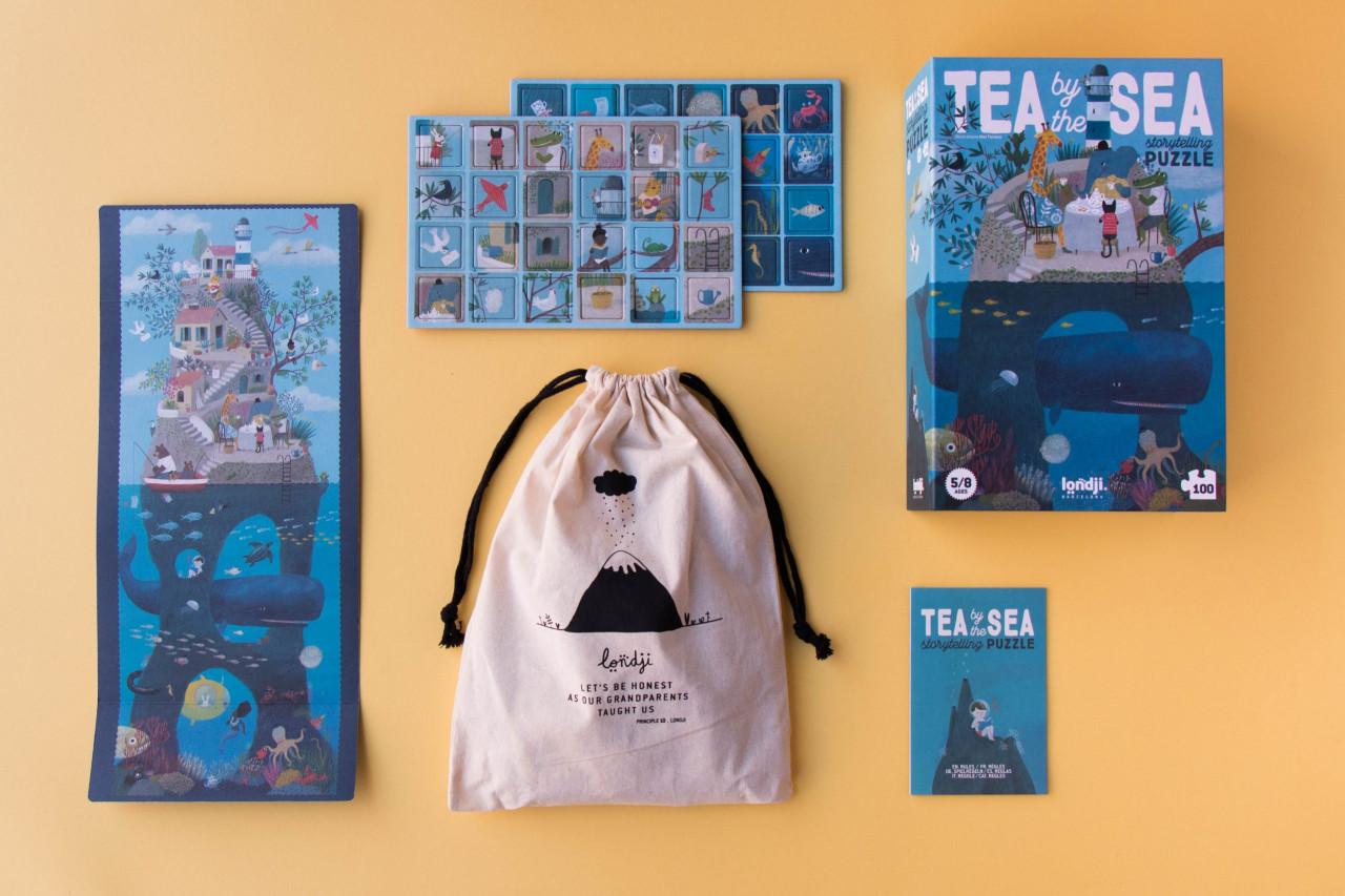 Puzzle Un Ceai fantastic Scufundați-vă într-o lume imaginară de vis, plină de viață. După ce puzzle-ul a fost rezolvat, vă oferim diferite jocuri cu cele 48 de cărți care îl însoțesc. Acest puzzle este un instrument excelent pentru a inventa povești, a spori creativitatea, a stimula imaginația și a exersa capacitatea de observație. Un puzzle oniric de 100 de piese și totodată 48 de cărți cu care vă propunem jocuri pentru a inventa povești și a spori imaginația întregii familii. Ilustrație: Mar Ferrero Vârsta recomandată: +5 ani. Confecționat din Hârtie FSC și carton reciclat conform reglementarilor EN71&ASTM. AVERTISMENT: Contraindicat copiilor sub 3 ani, conține piese mici, pericol de sufocare. A se utiliza sub directa supraveghere a unui adult. Producător: Londji, Spania.