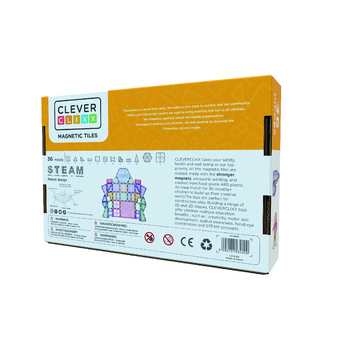 Set magnetic de construit Pastel 36 piese, Cleverclixx