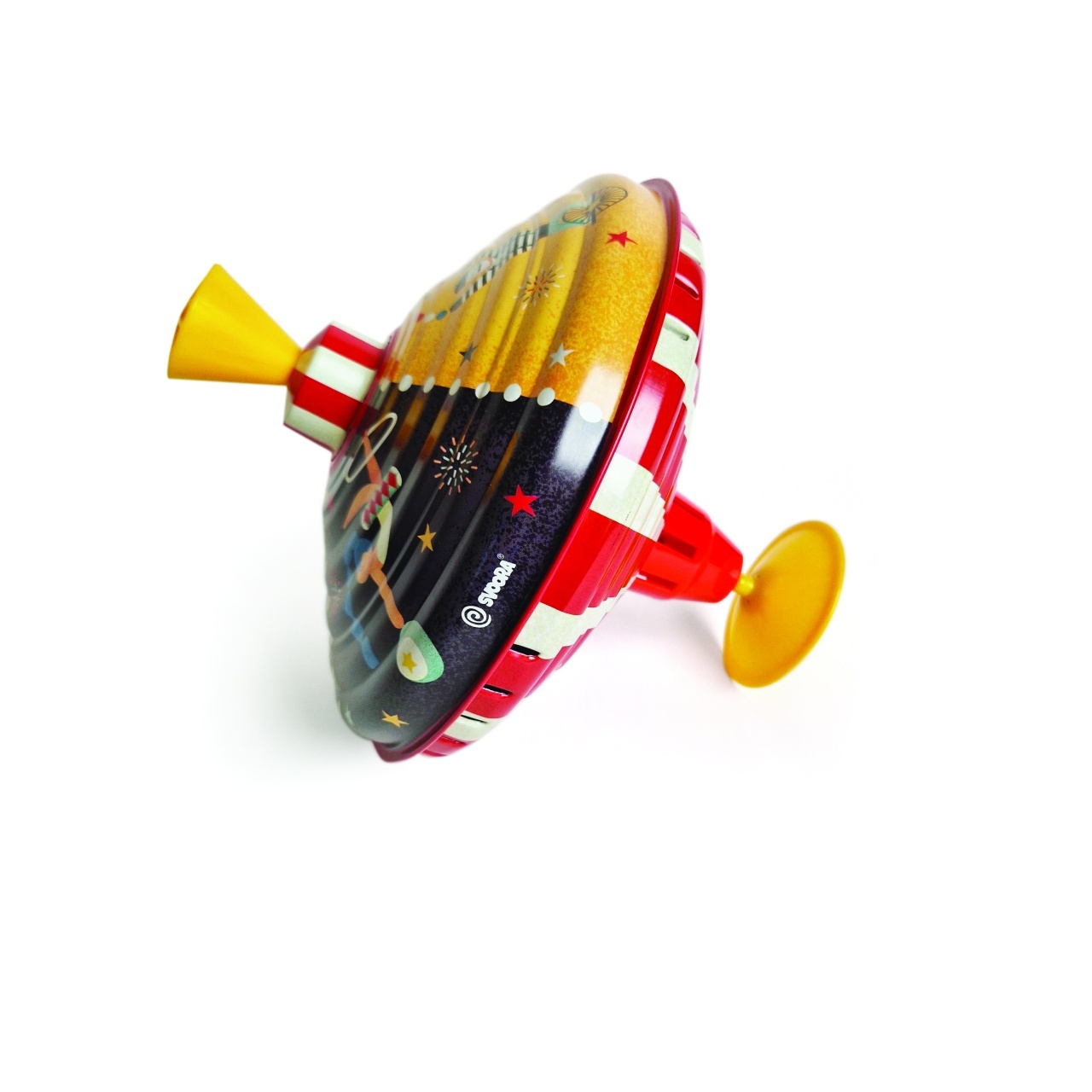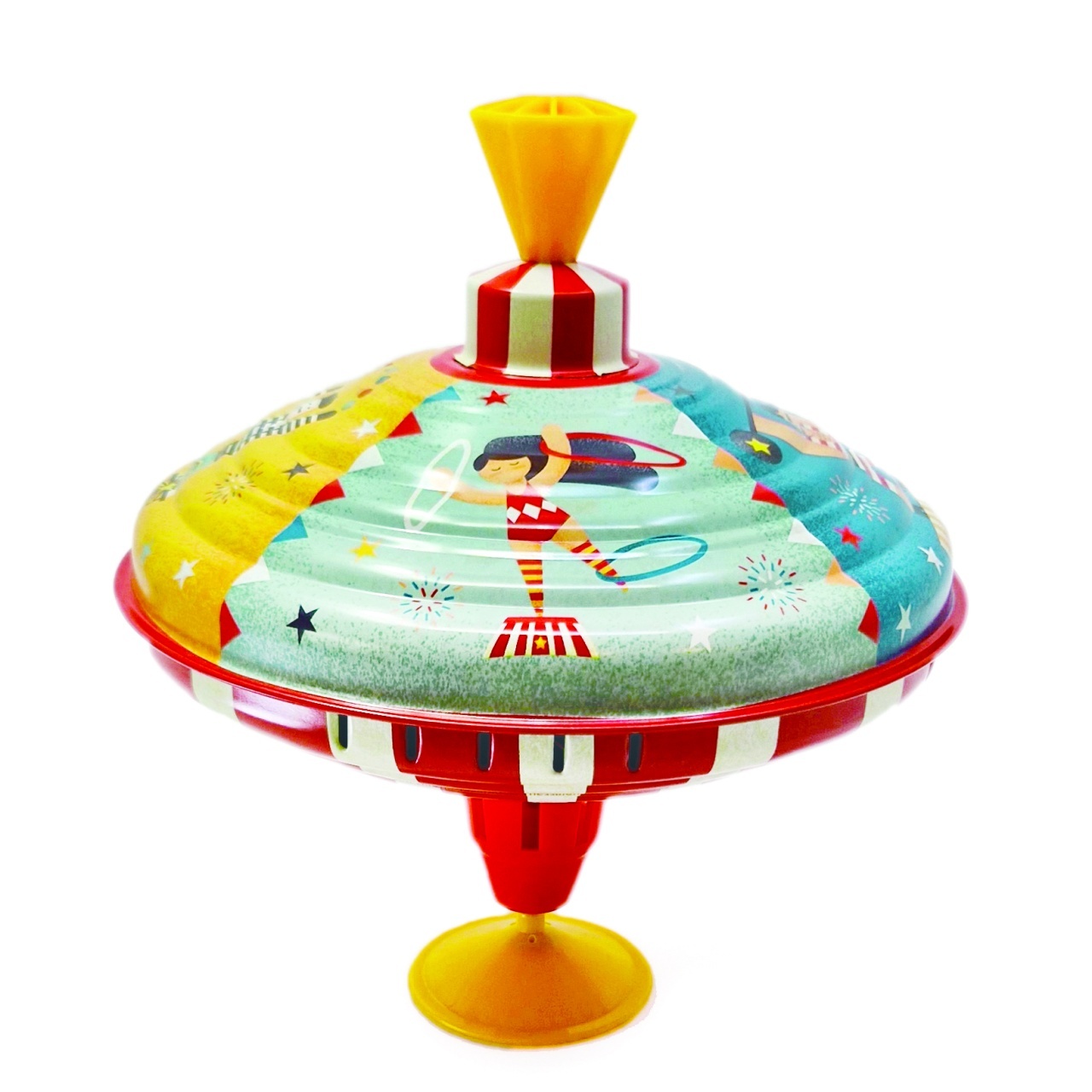 Cu un design inspirat din lumea vibrantă a circului, acest titirez prinde viață printr-un mecanism simplu: apasă și eliberează mânerul pentru a-l pune în mișcare. Pe măsură ce se rotește, emite un sunet plăcut și creează un spectacol vizual captivant, care îi ține pe cei mici fascinați minute în șir.